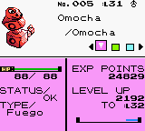 An author of similar scope and intentions was the unknown Uac.Dario, who was mostly known for the notable contributions he made to Pokémon Grape (i.e., the colorization system, the custom icon system, the quadruple bike speed, and the damage counter fighting). The colorization system he created was a masterpiece of Game Boy Color engineering: by exploiting the internal SuperPalette system, it was converted and made “upward compatible” with the Game Boy Color hardware, a kind of modification that was not featured in any of the original Pokémon games (and, probably, in none of the Nintendo Game Boy Original games).